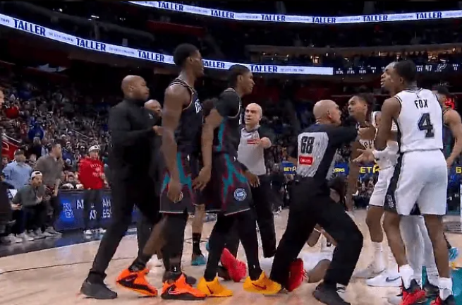 次节比赛双方爆发冲突,先是坎宁安推倒卡斯尔,随后凯尔登上前推搡坎宁安,杜伦冲过去手指凯尔登,裁判吹罚凯尔登与杜伦各一次技术犯规。